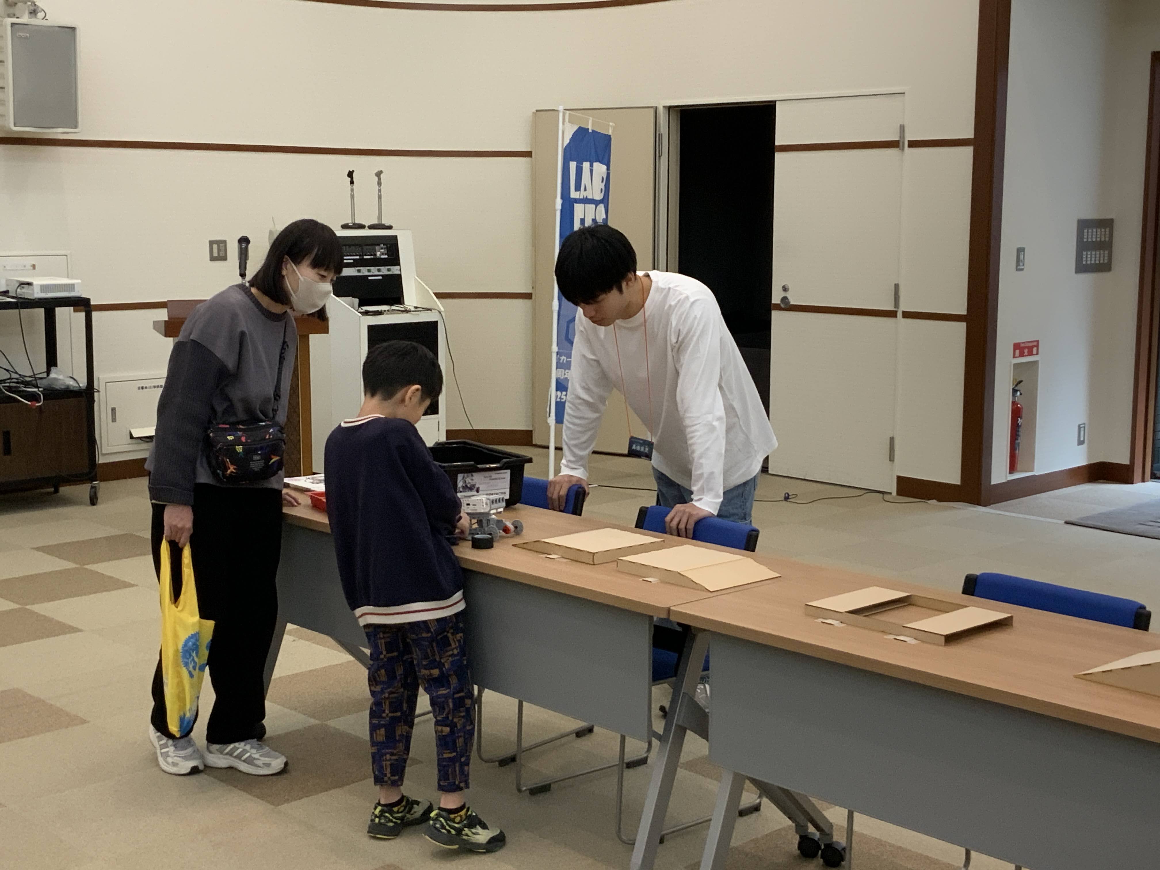 スタッフと一緒に実際に展示物を動かしながらロボティクス広場を体験していただき、楽しそうに交流している姿が印象的でした!