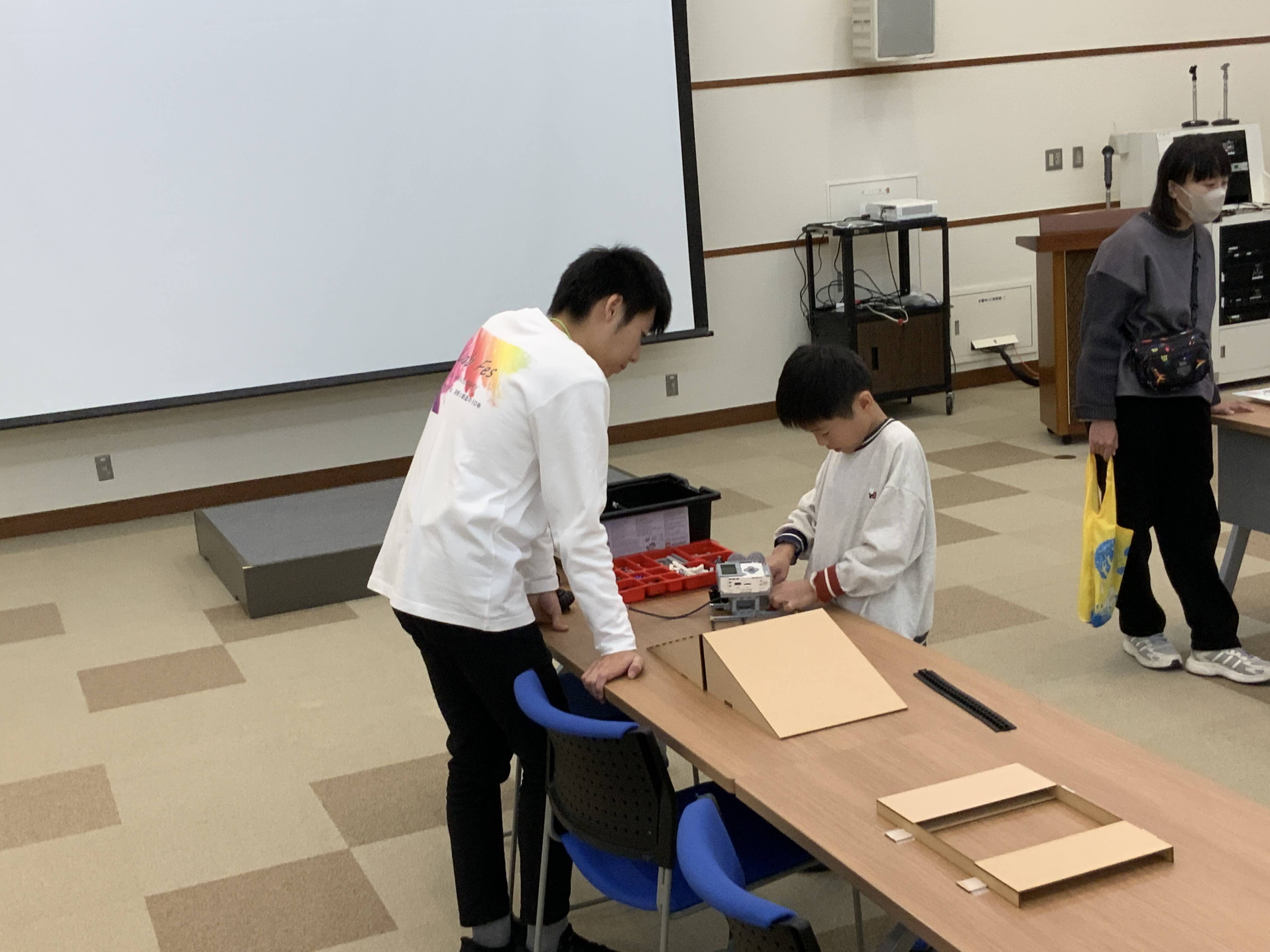 スタッフと一緒に実際に展示物を動かしながらロボティクス広場を体験していただき、楽しそうに交流している姿が印象的でした!